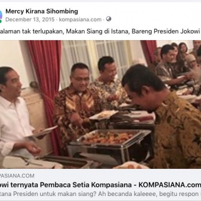 Long time ago. Pengalaman Kompasianer yang beruntung bisa makan siang bareng Pak Jokowi di Istana Presiden. https://www.kompasiana.com/ibumercy/566c5616707a611a0b78af06/jokowi-ternyata-pembaca-setia-kompasiana